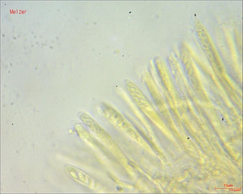 I mean the minute ascus apical ring should react hemiamyloid, sorry. This is only visible with oil immersion. If your Lugol (without KOH) stains the plasma yellowish, then it is good to check this.