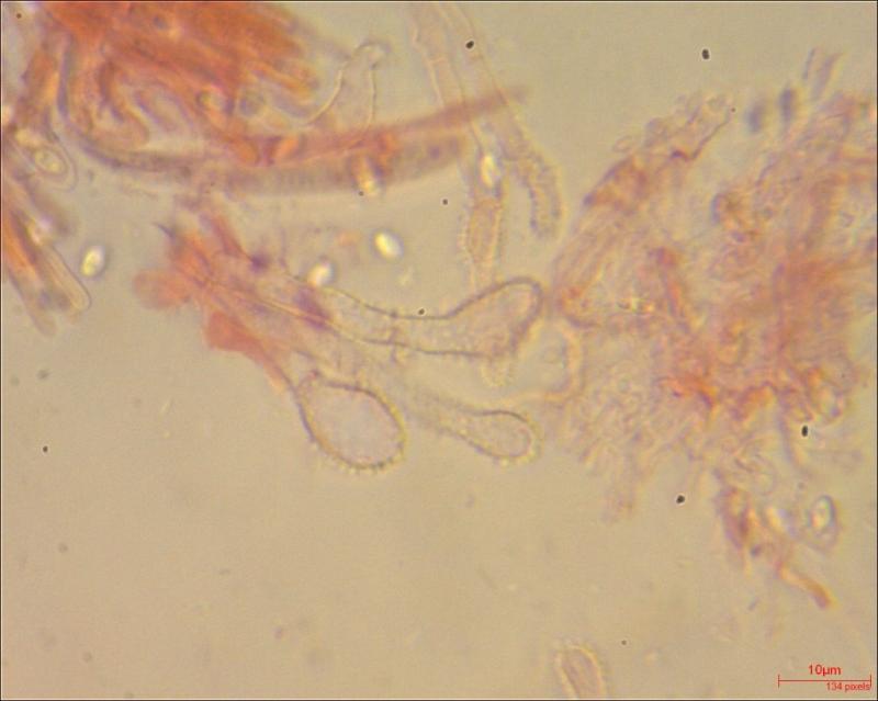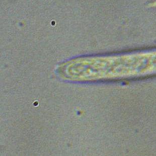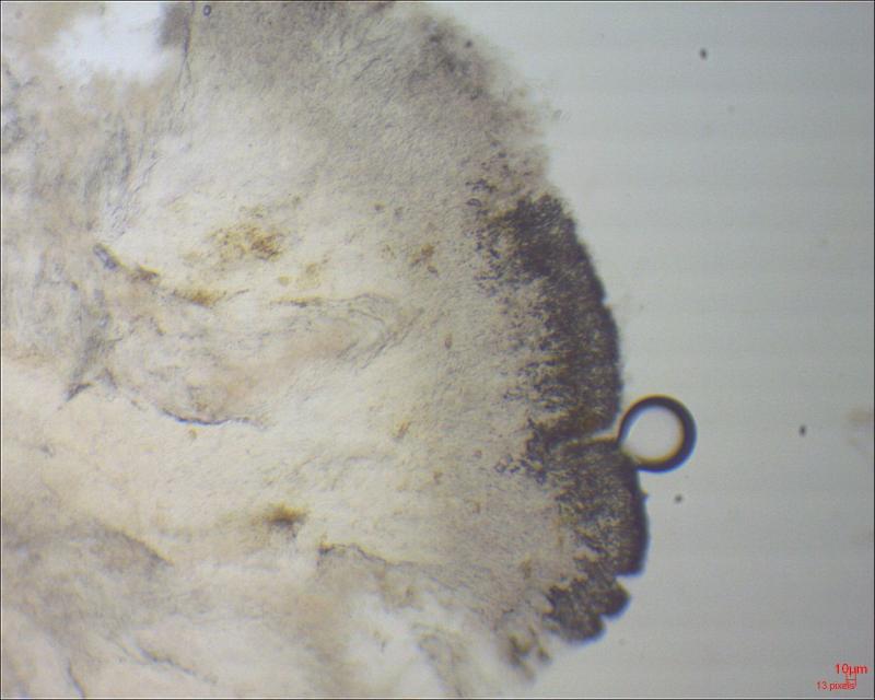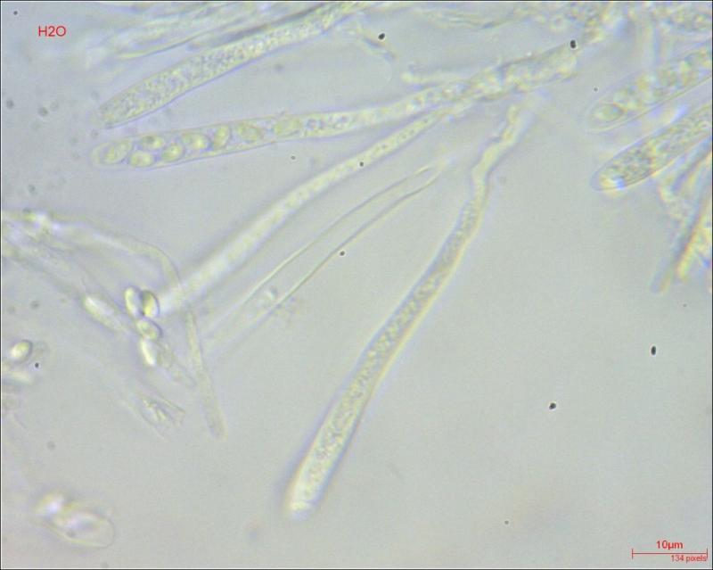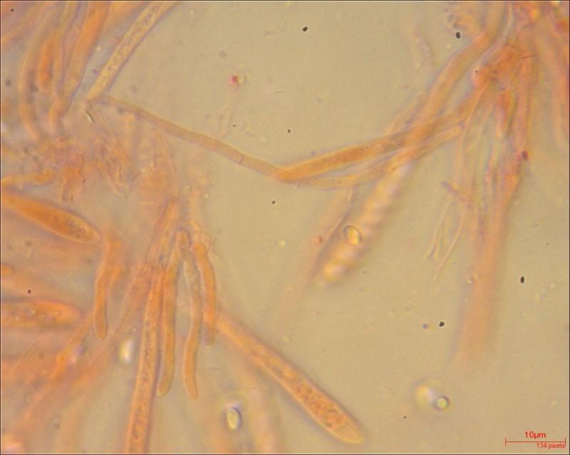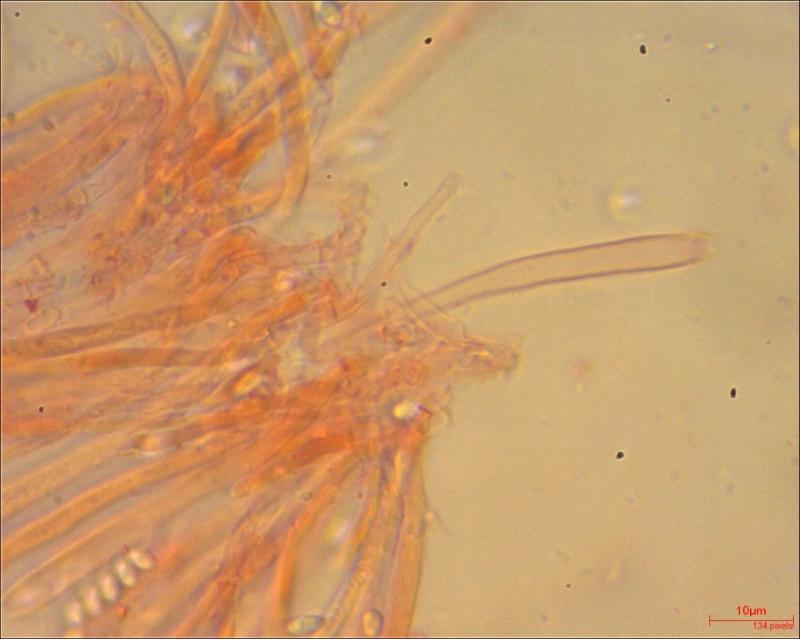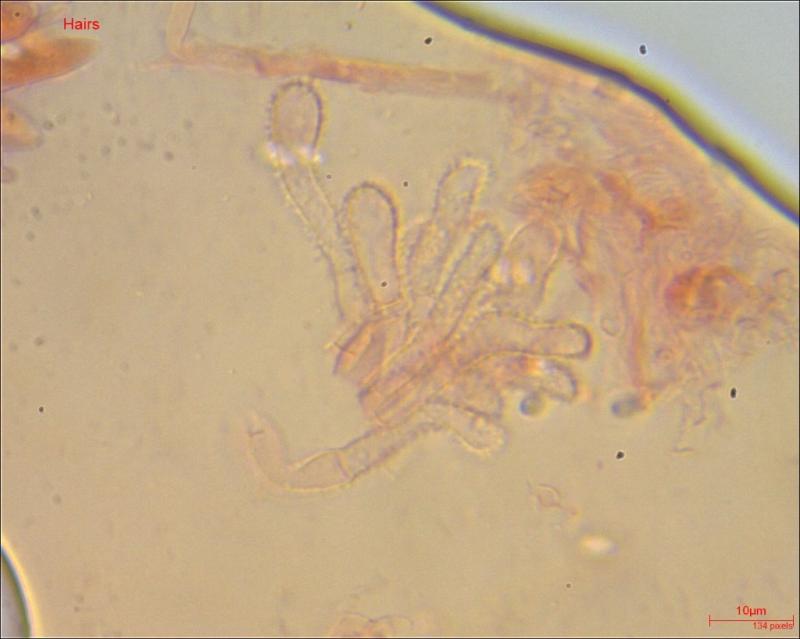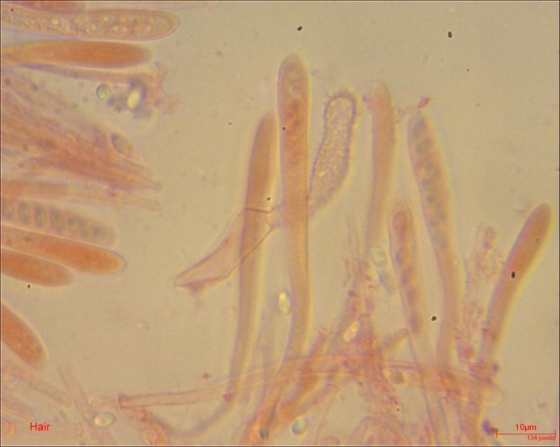 Apothecium: max 1 mm diameter; cream to light brown; exipulum with small flank hairs.