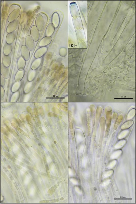 Ascas octospóricas, con croziers y con el poro apical amiloide.