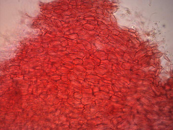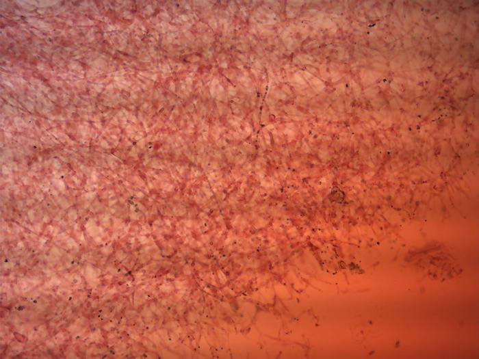 Médulla composée d'hyphes minces, enchevêtrées dans la gélatine.