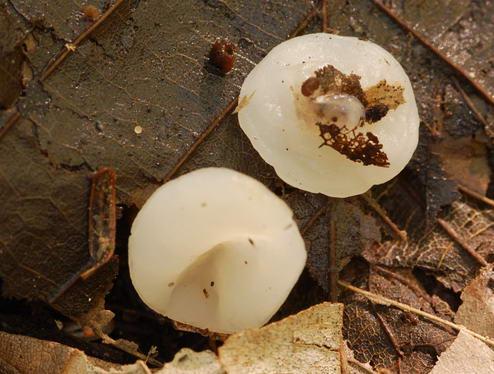 Ascome de 1 cm de diamètre, totalement lisse, fixé au substrat par le centre.