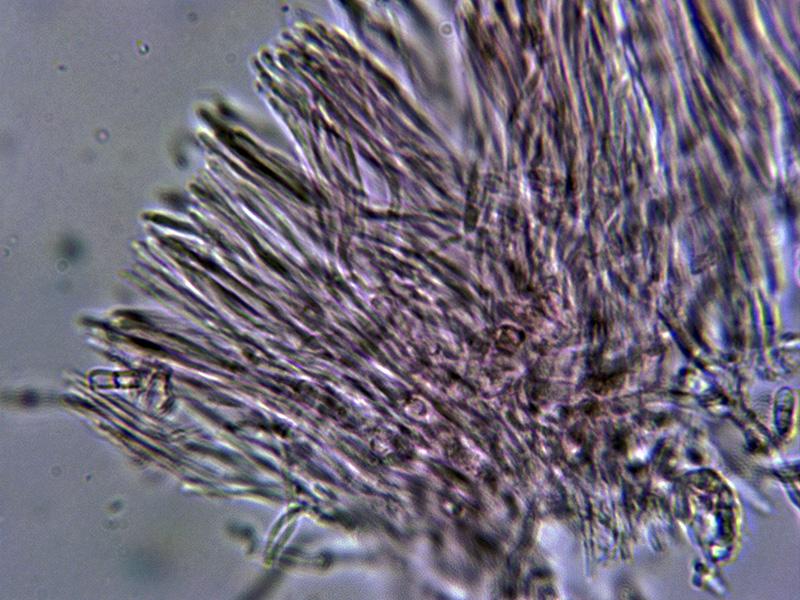 Con unas hifas terminales a modo de pelos de hasta 73 µm. de largo por 1,7 a 2 µm. de ancho.