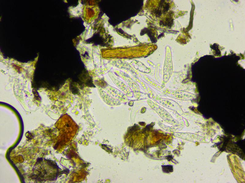 Les spores sont environ 15x4 µm et je crois qu´il y a un septum.