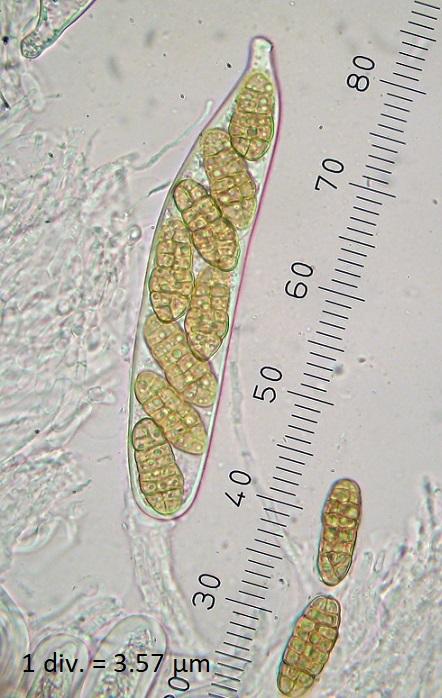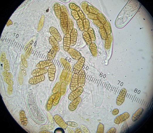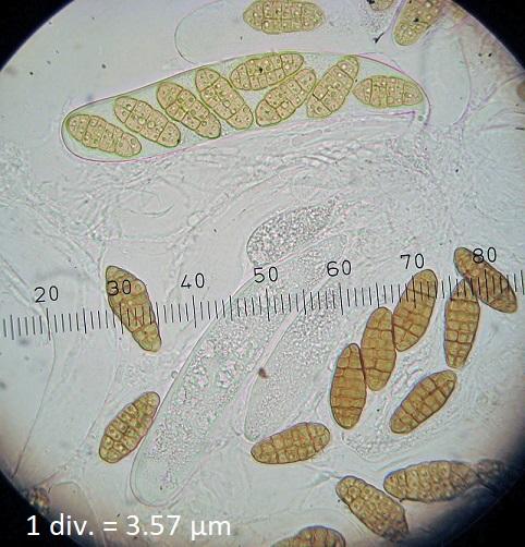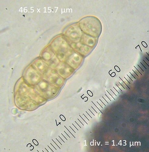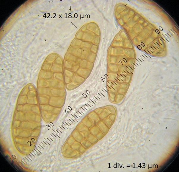 Spore sizes: 42.2-46.5 x 15.7-18.0 µm