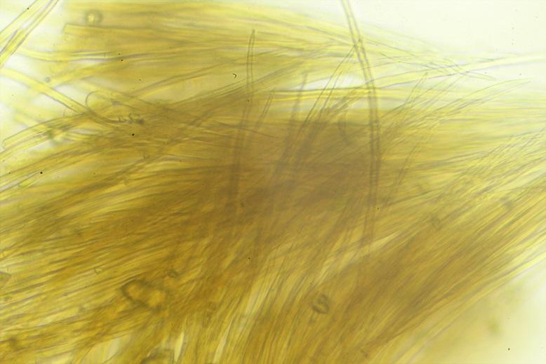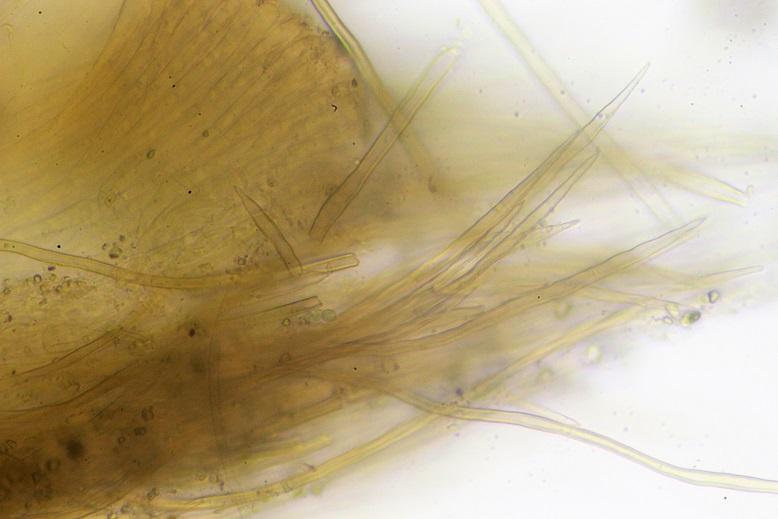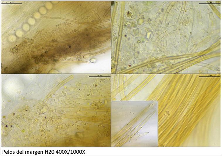 Pelos de color amarillo, septadas, de paredes gruesas y con el ápice terminado en punta.