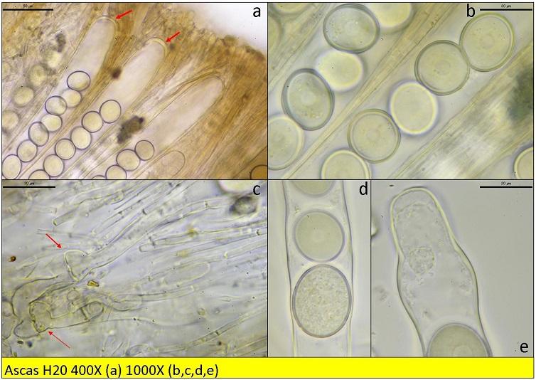 Ascos octospóricos, algunas con el ápice capitada, con croziers ( amiloidad no testada)