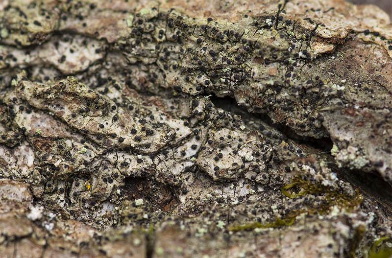 J'ai essayé de saisir avec "Lichens og Grande-Bretagne et Irlande", mais c'est mon premier lichen pyrénocarpe et il y a beaucoup de fonctionnalités dont je suis incertain et je me perds dans la clé. Je suis provisoirement arrivé à Anisomeridium sp. , mais je ne peux pas trouver une bonne correspondance dans la clé.