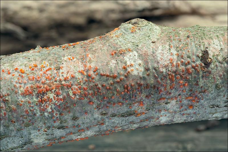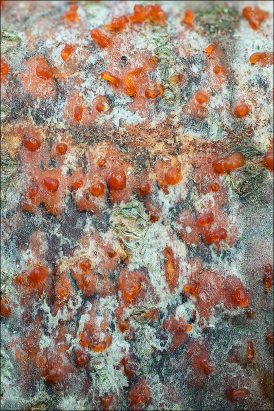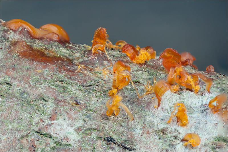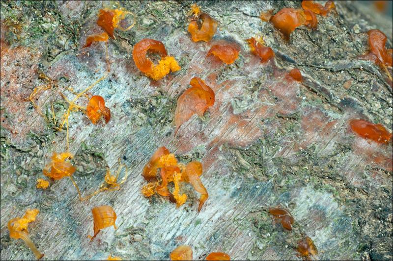Habitat: mountain mixed wood; Fagus sylvatica, Fraxinus ornus, Ostrya carpinifolia and Picea abies dominant trees; moderately inclined mountain slope, southeast aspect; calcareous, colluvial ground; fungus found on a thicker branch in a large pile of firewood cut down in the neighborhood waiting to be cut to smaller logs; exposed to direct rain; average precipitations ~ 3.000 mm/year, average temperature 7-9 deg C, elevation 600 m (1.970 feet), alpine phytogeographical region.