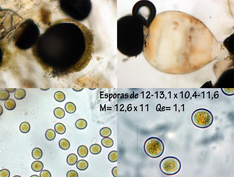 Other +/- round-spored species of Pilobolus have much smaller spores (5-7(8,5 µm) -> P. minutus), spores with different size upto 18,5 µm (-> P. lentiger = sphaerosporus) or have much larger sporangiophores (-> P. longipes).