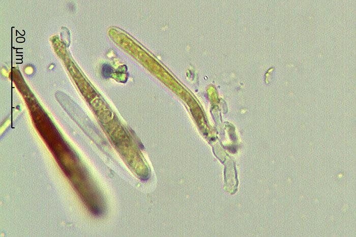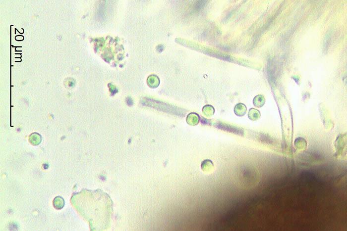 Esporas de unas 2,5-3,5 x 2-2,5 micras.