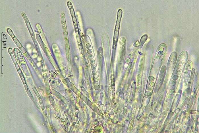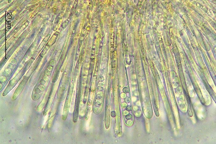 The croziers are often not complete in Lachnellula, but this varies within an apothecium between protuberances and complete croziers.