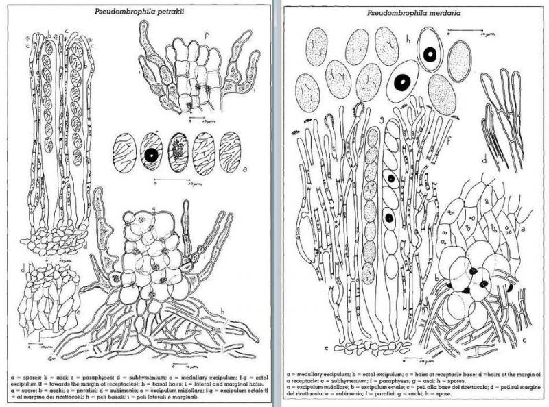 Je pense que l'ornamentation esporale des espores mûres de merdaria est exactement comme sur tes photos (et comme les miens http://www.xn--centrodeestudiosmicolgicosasturianos-grd.com/search/label/Pseudombrophila%20merdaria). Plus (sub) reticulées que sur les dessins de Doveri.