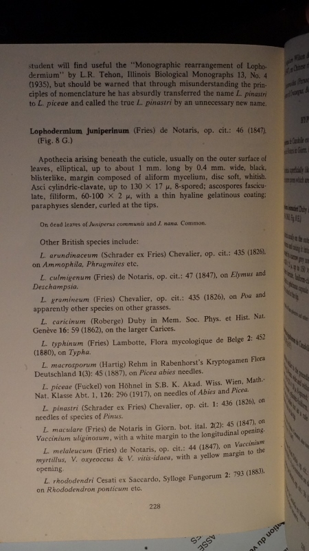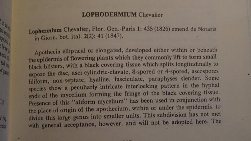 FYI, I'm attaching scan of the genus Lophodermium I found in Dennis' "British Ascomycetes".