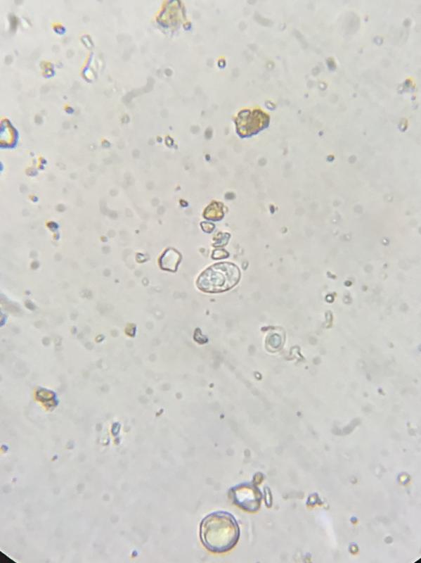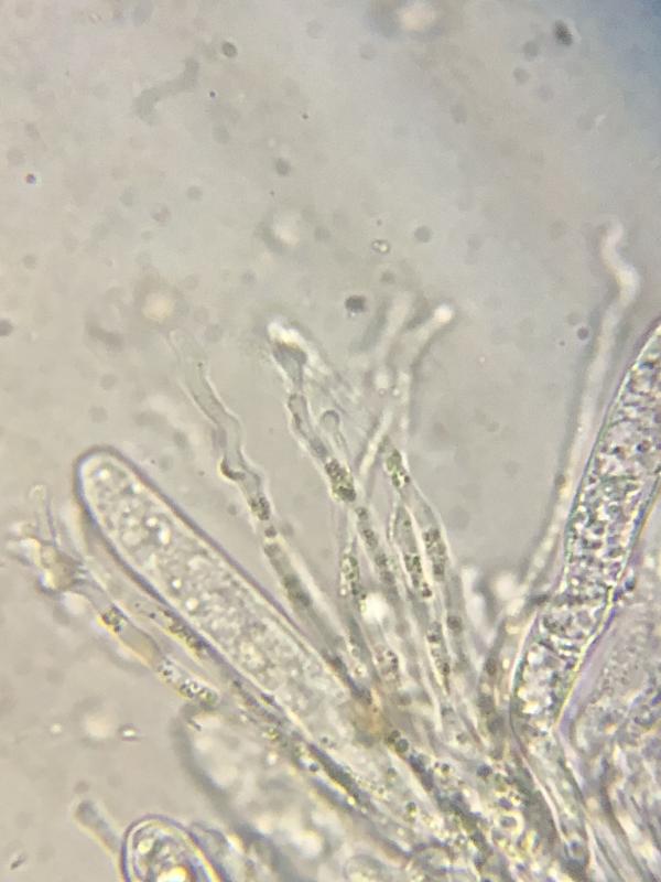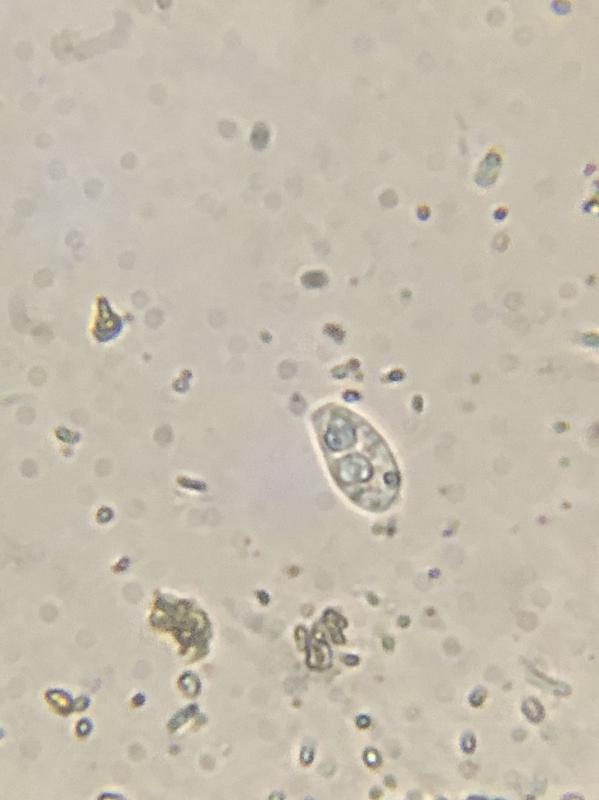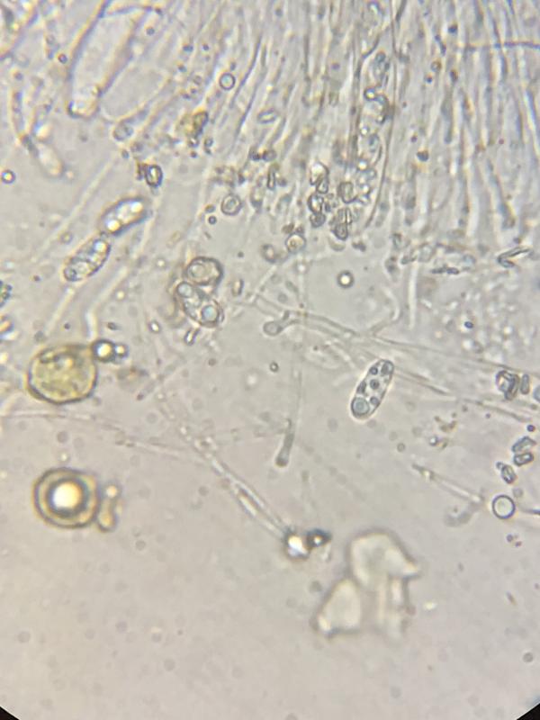Uff, could you send more pics of the spores? And make a test: do the drops in the spores disappear in KOH?