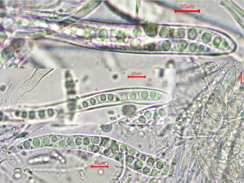 P. inapiculata isn't a bad idea, but as far as I see the asci there are much longer, though under a similar width. Did you measure your asci? I get *33 x 7.5 µm, inapiculata is around 40-60 x 6.5-7.5 µm.