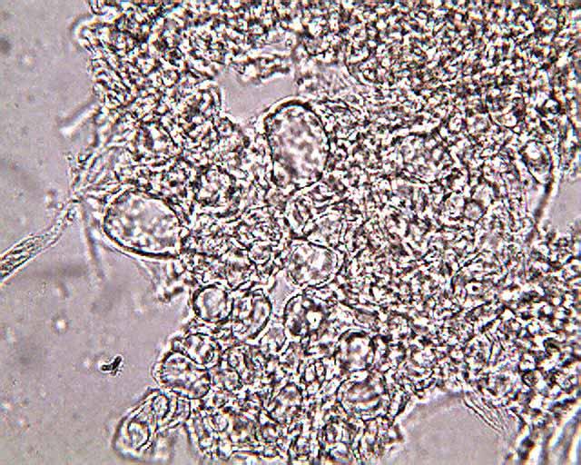 note faint, hyaline appendages apparent only in DIC