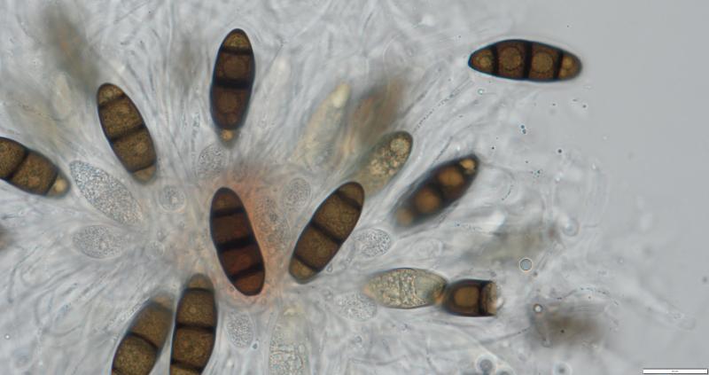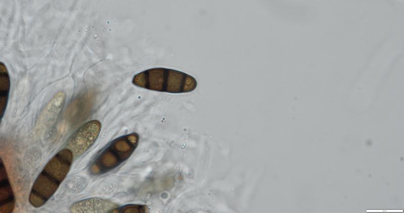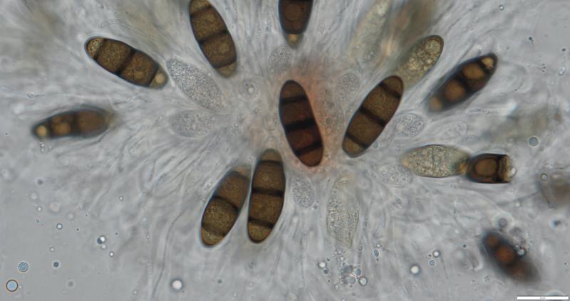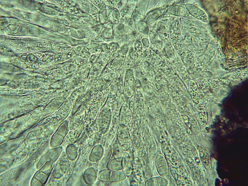 j'avais initialement pensé à Ascobolus crenulatus ou Ascobolus costantinii, mais les spores de ma récolte sont plus grandes: 16-18 (19) x 8-9, le plus fréquent 18 x 9.