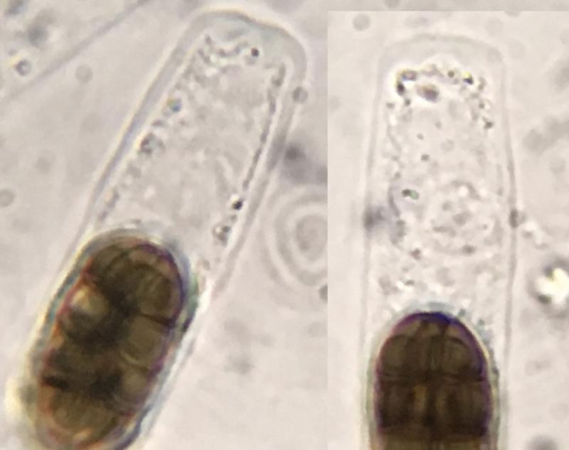 Les spores sont lissent avec un guttule à peine visible et ont une paroi épaisse