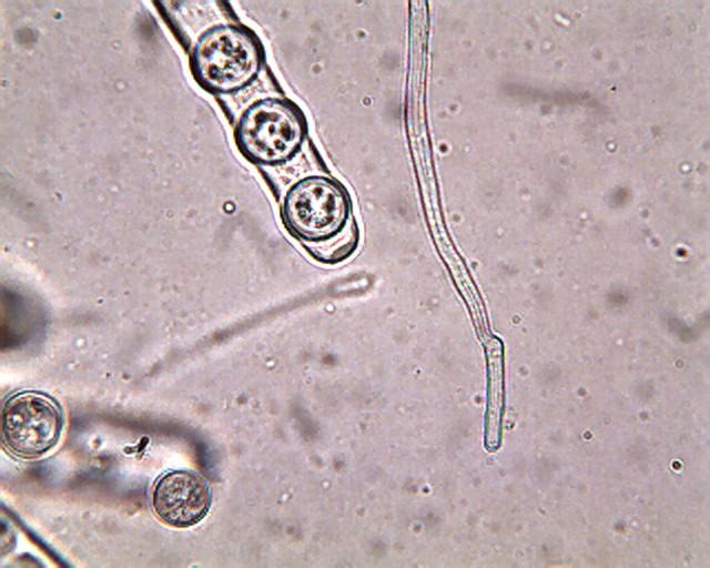 Paraphyses are more or less cylindrical. Paraphyses width: 1.6-2.0µm