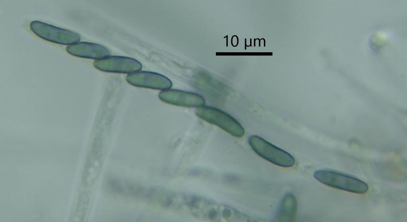 Spores brownish, typically 4-celled; 26.8 x 2.4;