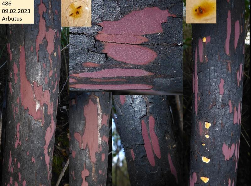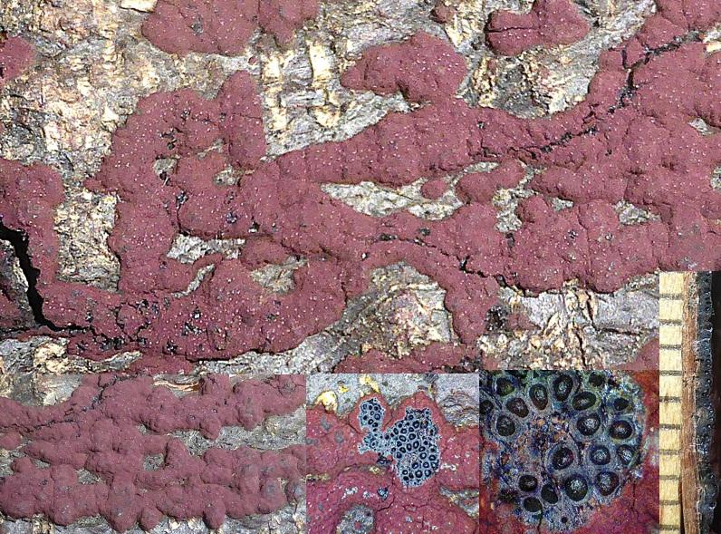 Op donderdag 5 februari vonden we tijdens een inventarisatie deze kleine ascomyceet (0,2-0,3mm). Lijkt erop dat ze staan op ontschorst hout, maar staan naast/op kleine pyrenomyceten(?).