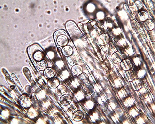 Asci are hemiamyloid, red in IKI and blue in IKI after pretreatment with KOH. With croziers. Measuring: