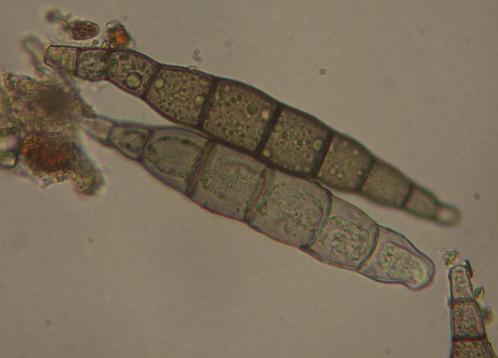 Chlamydospores (72)104-141 x (15)20-25 µ, 3 à 9-septées.