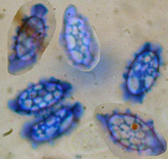 Les mesures des spores ont-elles été faites dans le bleu coton directement après montage ?