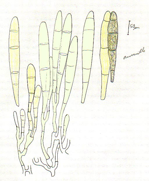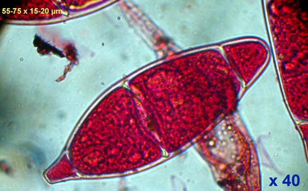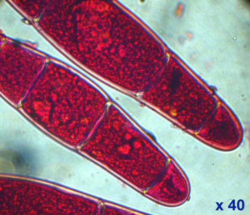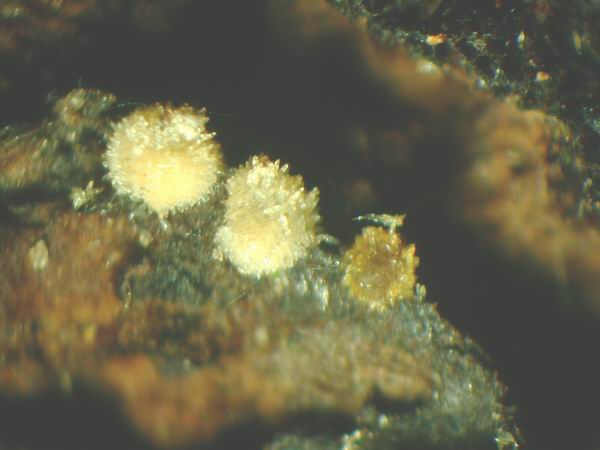 J'ai trouvé cette petite chose (sphères de 1 à 2 mm de diamètre, de couleur beige jaunâtre) sur écorce de bois mort (Fagus) et la micro révèle ce que je pense être des conidies de taiille impressionnante : 15-20 x 55-75 µm ... Dois-je me diriger vers un Imperfecti ou vers un anamorphe ?