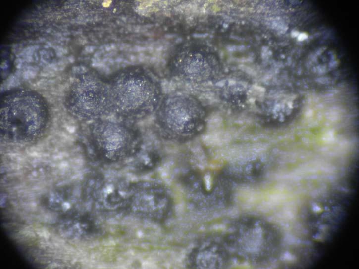Among the perethecia was an anamorph species, with long neck (up to 1450*90 µm, apikal 20 µm), which consists of long, parallel, light grey hyphae, 2,5 µm wide. The conidia are hyaline, ovoid (3-4*2 µm). Maybe the anamorph is a Hyalopycnis. I don't know, if this anamorph-type belongs to Chaetosphaeria.