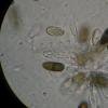 Dans la micro précédentede Bionectria ralfsii (merci à Jacques et Christian pour leur encourageante confirmation), se trouvait au milieu une espèce de conidies en forme de bouteille, voir dans la pièce jointe suivante, de quoi poser une colle. Je me suis dit alors que ce devait être un signe pour que je laisse mon micro et aille déboucher de vraies bouteilles pour le réveillon.