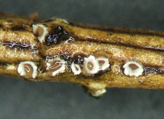 Here is a picture and a draw of microscopical details for a Stictis sp.