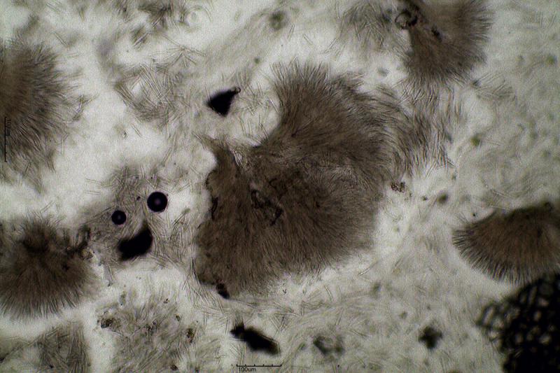 Pongo imágenes de un hongo de consistencia gelatinosa, con dimensiones de aproximadamente 1 mm y de color rosado. Fueron recolectados sobre una rama en descomposición de Buxus sempervirens