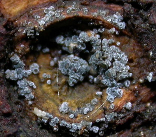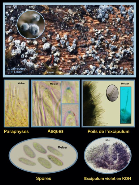 Hôte : fibres assez décomposées de bois mort probablement d’érable