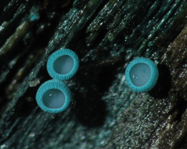 Le bois est coloré en bleu-vert. Je ne connais rien d'autre qui colore le bois de la même couleur que les apothécies.