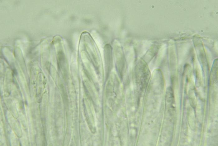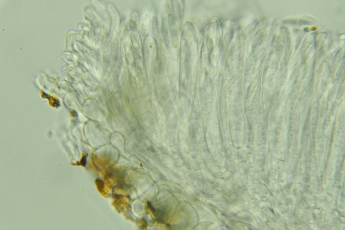 The spores measure 11-15.3 × 3-3.3 µm. Given the microscopy and the substrate I suspect this might be P. betulina (same as P. betulicola, I believe). Am I right?