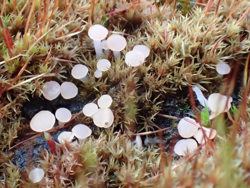 Apothecia pale pink, 2-5mm diameter with ± flat disc, tapering to a whitish stipe (overall height 3-4mm). Paraphyses c. 2µm wide, septate, not expanded toward their apices, sparsely branched. Asci c. 8µm wide (in KOH), 8-spored, with hemiamyloid apical ring (orange in IKI before treatment with KOH, blue after KOH), with croziers. Ascospores 0-1 septate, 11-18 x 3-4µm (in water), with lipid droplets.