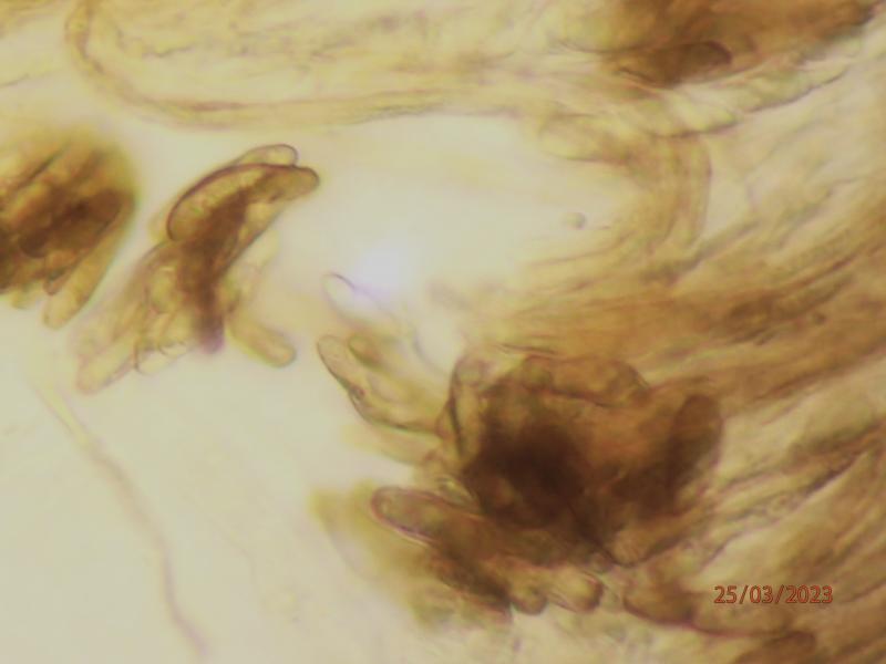 Thanks for your opinion, Georges. I will have another attempt at looking for paraphyses (I doubt they will be alive). I assume that the spore color is not a result of necrosis or some other process?
