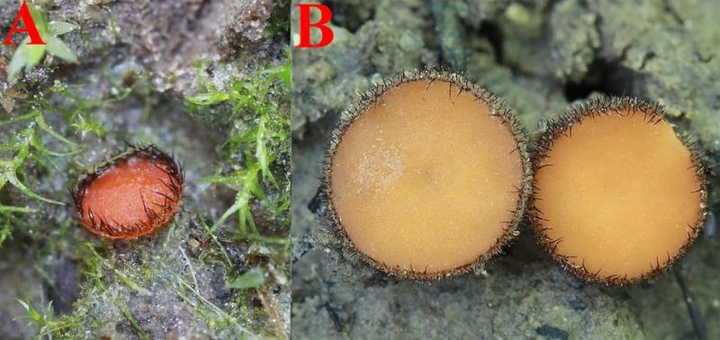 Hymenium bright red. Apothecia diameter 1-2 mm. Everything looks like S.trechispora, but the ascospores have 20.4-23.7 µm diameters (Av=21.9 µm) (N=30).