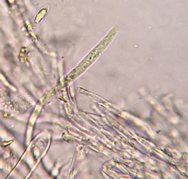 Ectal excipulum textura porrecta. Some brown pigmentation in the Ectal.