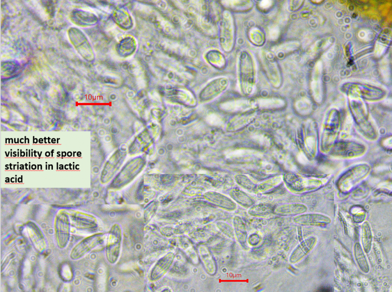 2. This time I found a lot of spores, few also still being in (hardly visible) asci. The authentic spores are definitely longitudinally striate, and measure about 10,5-12,5/3,4-4,5 µm.