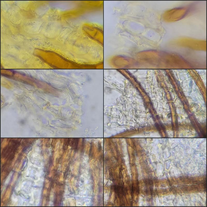 Hairs brown, multiseptate, ~400 x 4-6.