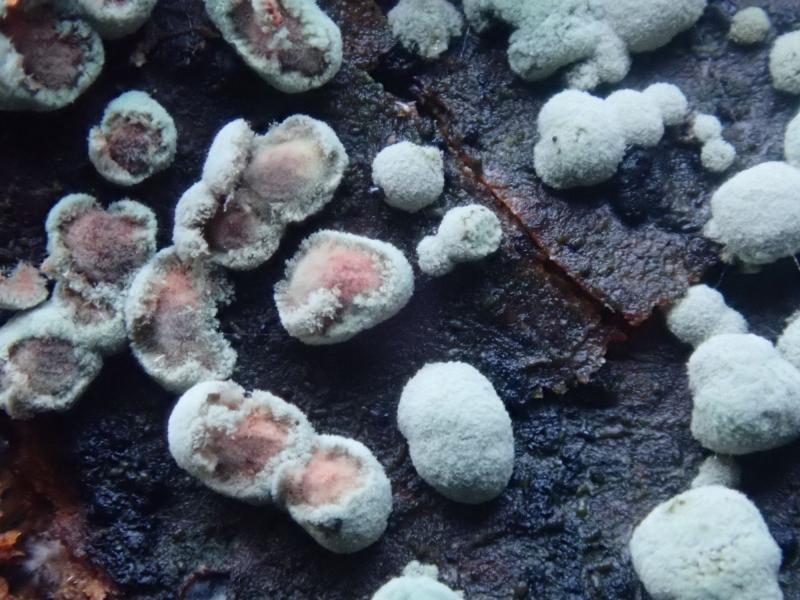 Est-ce que quelqu'un peut me dire s'il s'agit de l'anamorphe de Hypoxylon fuscum ou Hypoxylon fragiforme et de quel est le type de structure ?