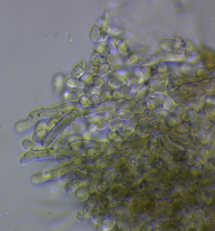 Hypoxylon fragiforme : Structure conidiogène hyaline à légèrement pigmentée, rugueuse, de type Nodulisporium