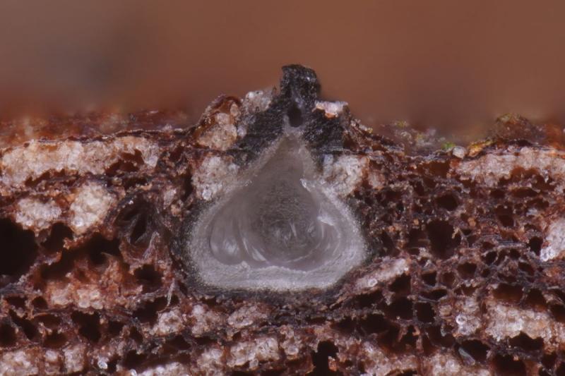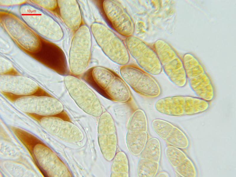 Another species found in the same place as cf. L. massarioides in swampy area of a floodplain forest on an unidentified piece of bark, under trees of Salix, Ulmus, Populus x can.. Mature spores don't seem to have a gealtinous sheat. Could it be Lophiostoma nuculoides?