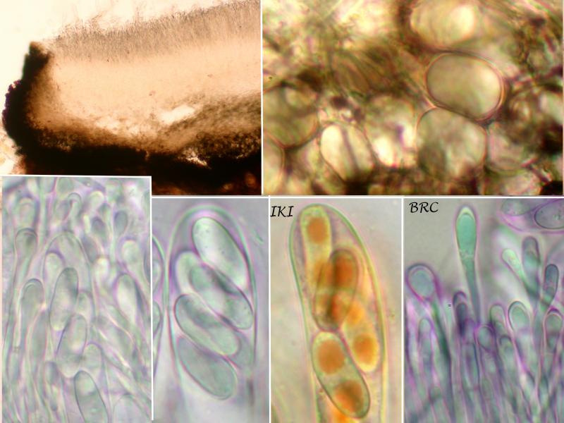Bonjour, Quelqu'un pourrait il m'indiquer une piste pour cette espèce récoltée sur une petite branche décortiquée , avec des spores de 13-15 x 5 µm , des asques environ 120 x 11, H+, IKI - et des paraphyses nettement capitées et remplies de vacuoles réfringentes homogènes (CRB +)
