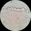 Asci sometimes truncate. The spores arrayed, as seen in photo 5 and 6, with the spore bodies facing upward at the top of the ascus and downward in the bottom spores. 28-33 x 3-3.6µm