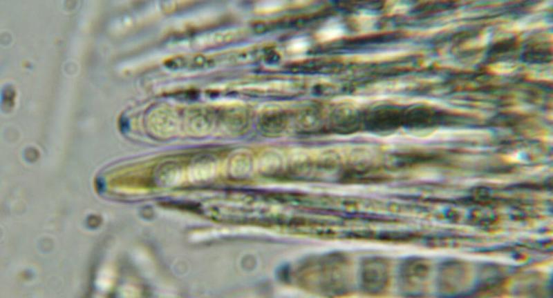 Interesting to know would be if the ascus apex reacts hemiamyloid (in Lugol or after KOH in MLZ) or is permanently inamyloid. This variation is mentioned in my key on my homepage, which I just noticed is again out of order.