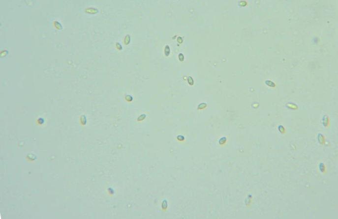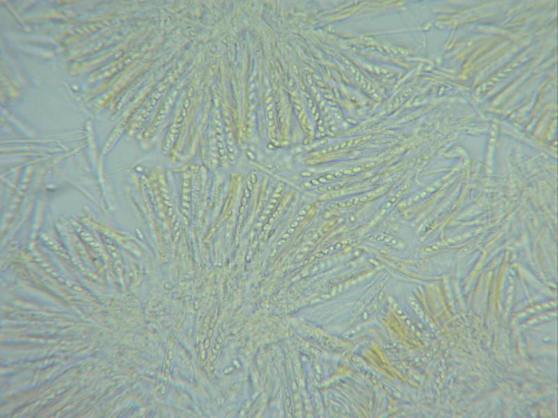 I'm not very good at microscopy but the largest spores in a squash were about 5.3-6.7 x 2.2-2.6 mu, elliptical, hyaline, 8 per ascus. Paraphyses hyaline and of even width.