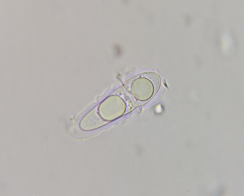 These tiny (0.4-0.5 mm diam.), whitish, short-stip